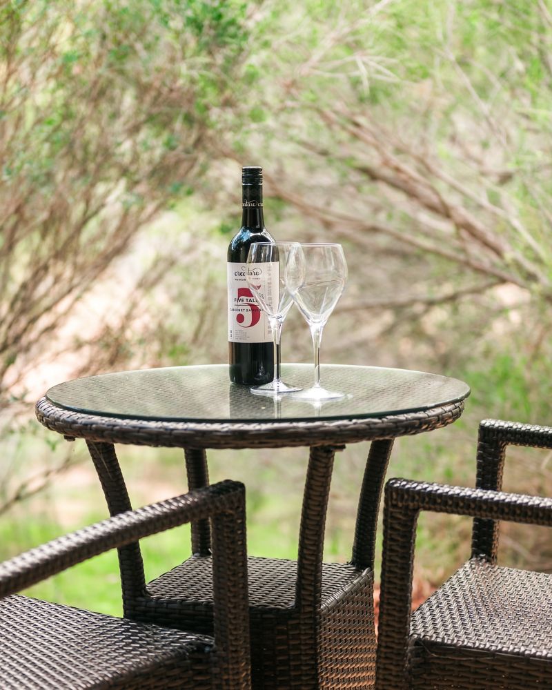 Cathedral ceilings, limestone feature walls, timber floors with private terrace overlooking native gardens. Open plan living-dining, kitchen and laundry. Master bedroom with king bed and bathtub, second bedroom with king or twin beds and rain shower.