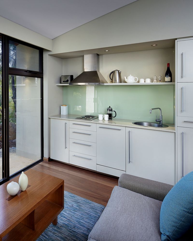 Spacious open plan villa with private terrace overlooking tranquil native gardens. Featuring timber floorboards and limestone feature walls, marble en-suite with deep soaking bathtub and separate rain shower plus cooktop, microwave and dishwasher.
