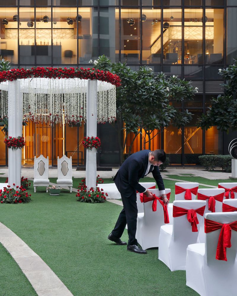 Step into the Peacock Ballroom, a pillar-less marvel spanning 1,181 sqm (12,712 sqft), designed for transformative events from auto launches to elegant weddings. With over 3,716 sqm (40,000 sqft) of dynamic space, including the lush Courtyard, our venue blends inspiringdesign with seamless functionality, ensuring every event is curated to inspire.