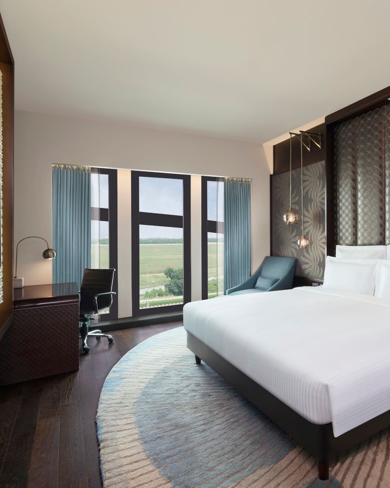 Discover contemporary comfort in our thoughtfully designed 36 sqm Deluxe King Room with airport view. This room offers a workstation, 65" LED TV, electronic safe, and responsive climate control. Bathroom features a shower, bathtub and health faucet.