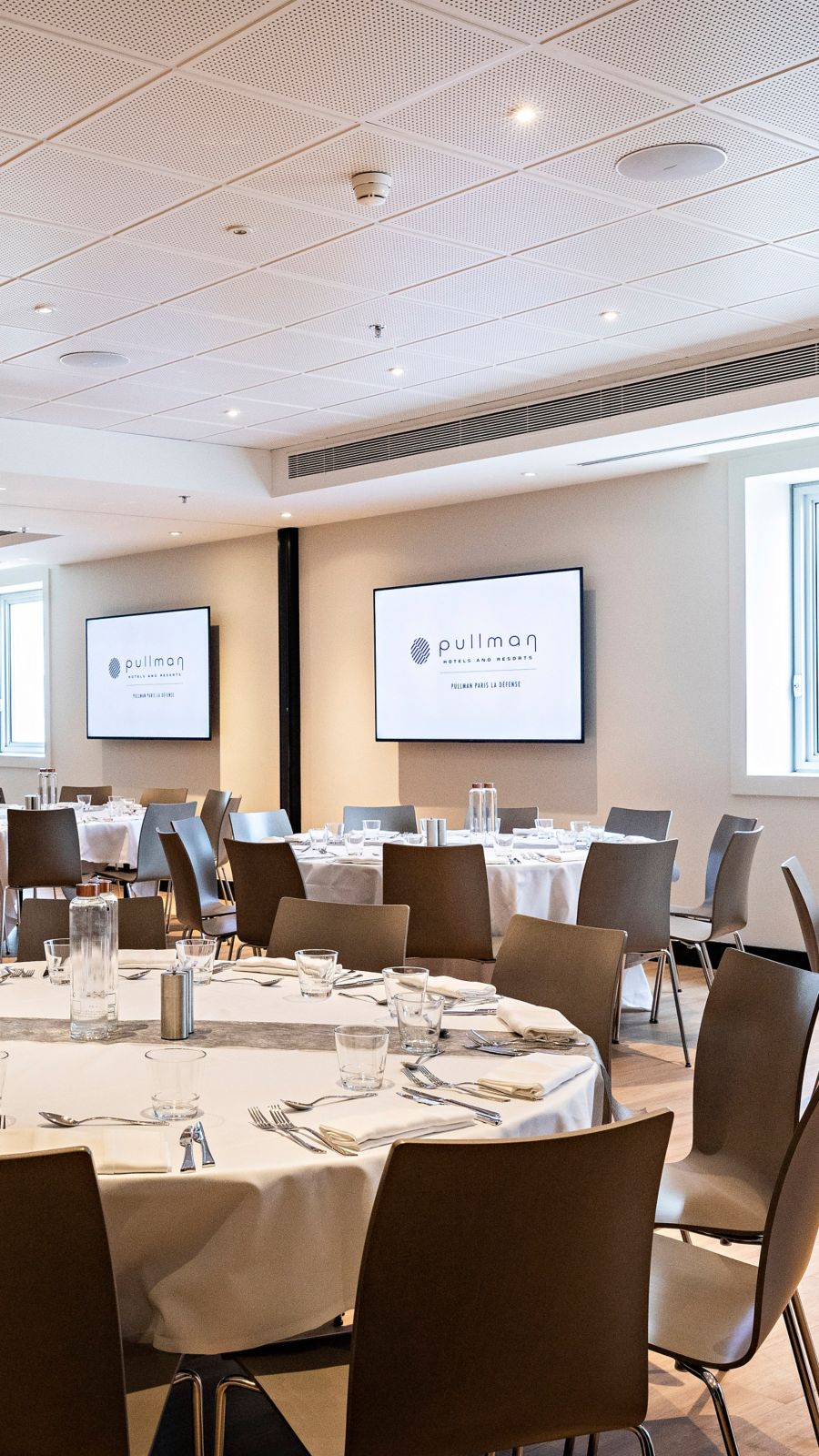 In the heart of the vibrant Bercy district, the trendy Pullman Paris Centre-Bercy, designed by Tom Dixon, invites you to live every moment to the fullest. Enjoy unique services: a trendy restaurant and bar, an ephemeral terrace, co-working spaces, an art gallery, a wellness area, a private cinema by MK2 and 26 hybrid meeting rooms.