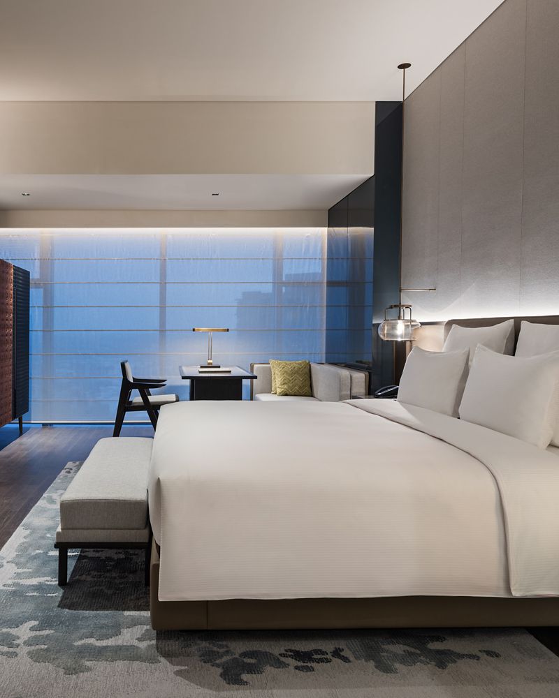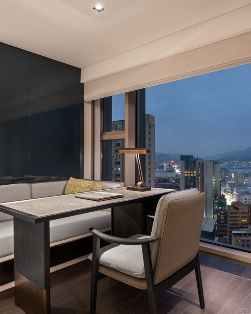 The Deluxe Executive Room, with one king bed, city view and high-floor location, offers a serene 50 sqm (538 sqft) retreat where moments of repose blend seamlessly with productivity. Enjoy expansive city views through French windows, a spacious study area, and modern amenities, all designed to refresh and inspire.