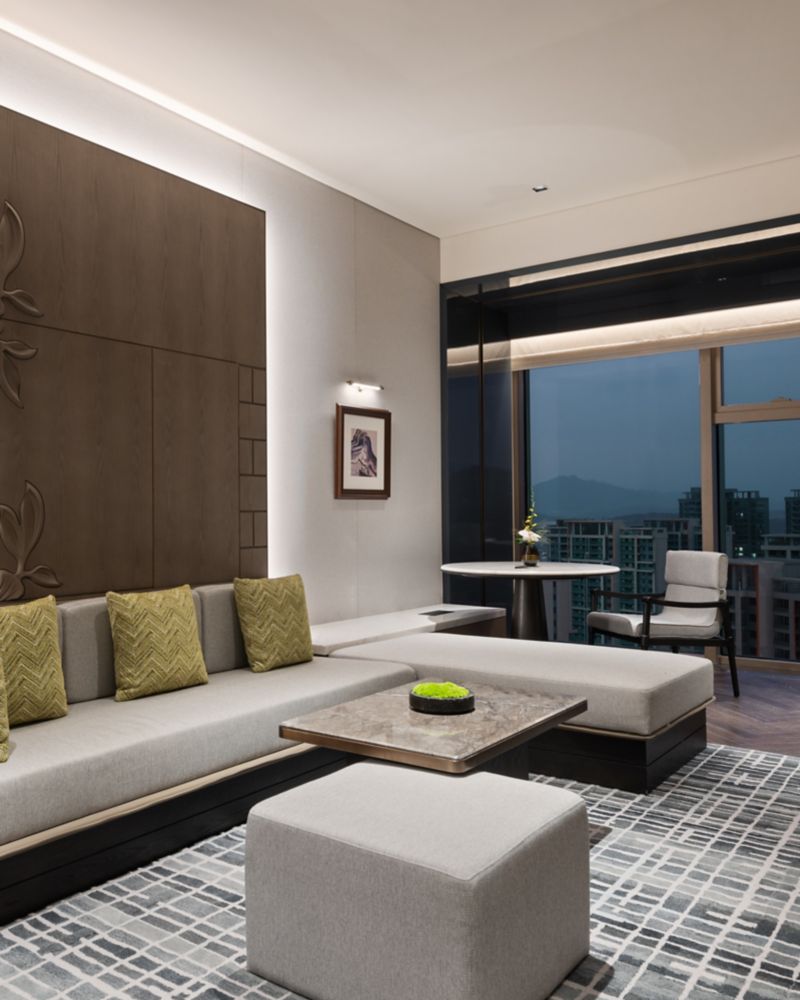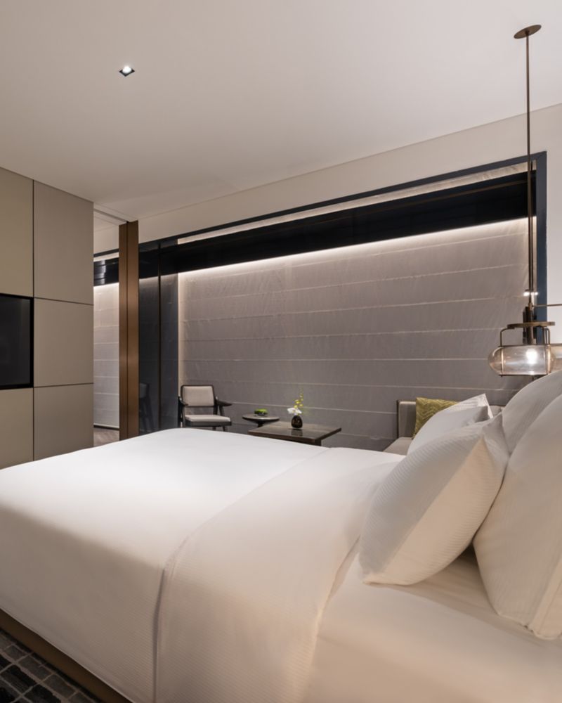The Deluxe Suite, with its king-size bed and city view, offers a seamless blend of rest and creativity. Spanning 35 sqm (377 sqft), this suite is a haven of thoughtful amenities and intuitive technologies, designed for both relaxation and comfort.