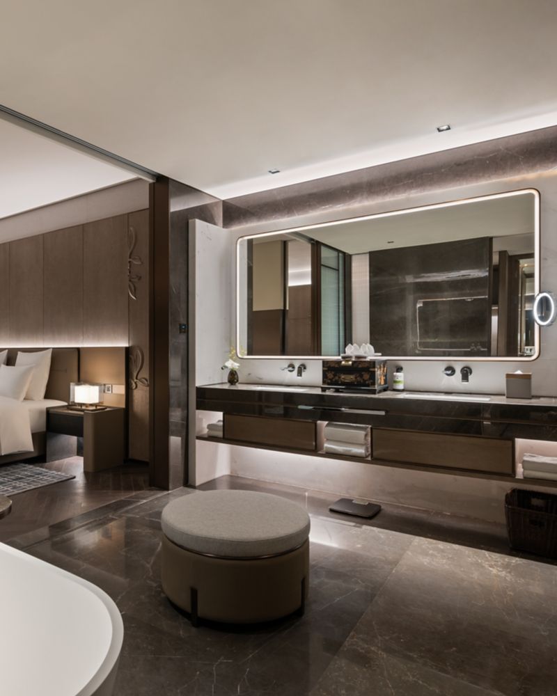 落地窗,51㎡,1.35米大床,免费上网,65寸电视,宽敞的办公桌,迷你吧,恒温热带雨林淋浴系统和浴缸,智能马桶,浴袍和拖鞋,熨斗,熨衣板