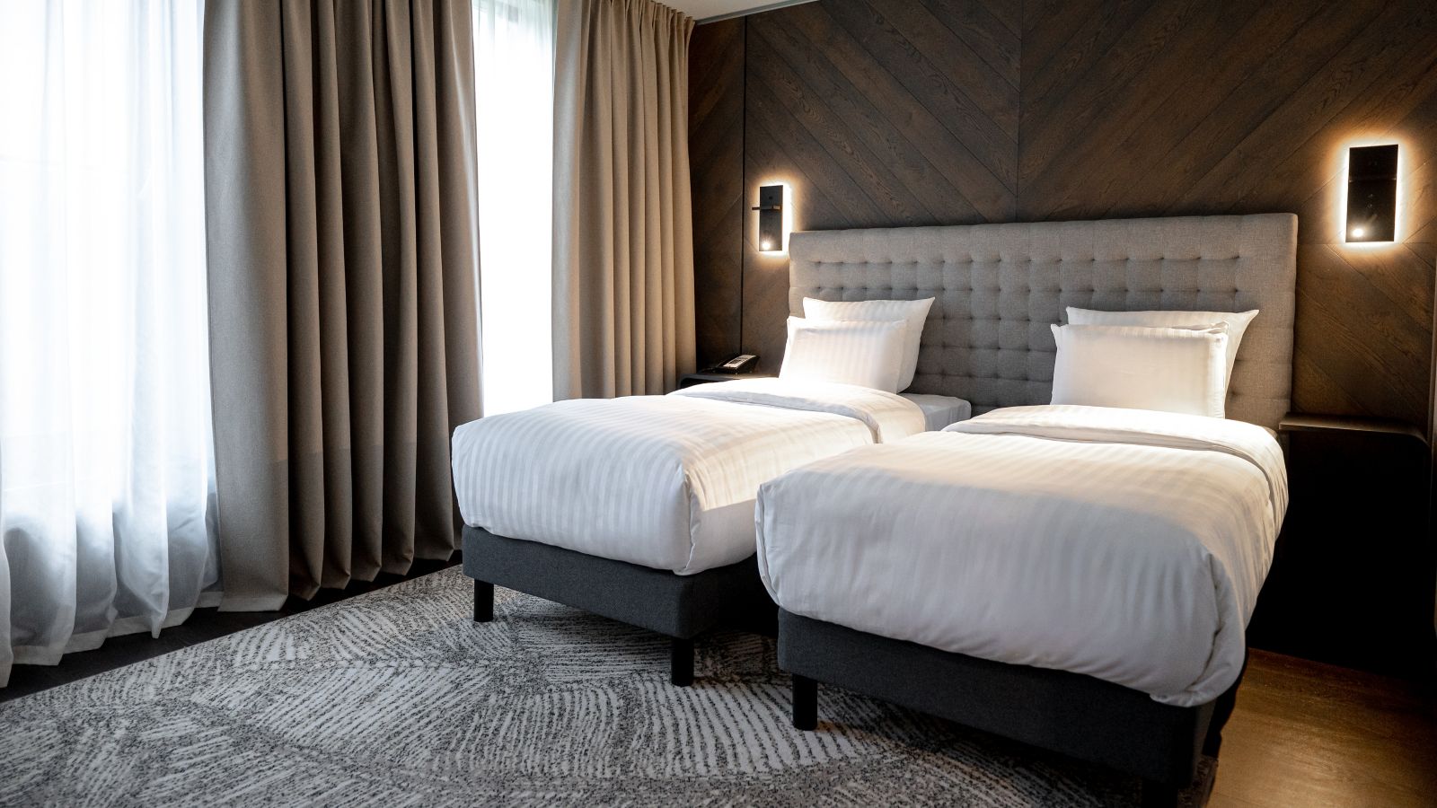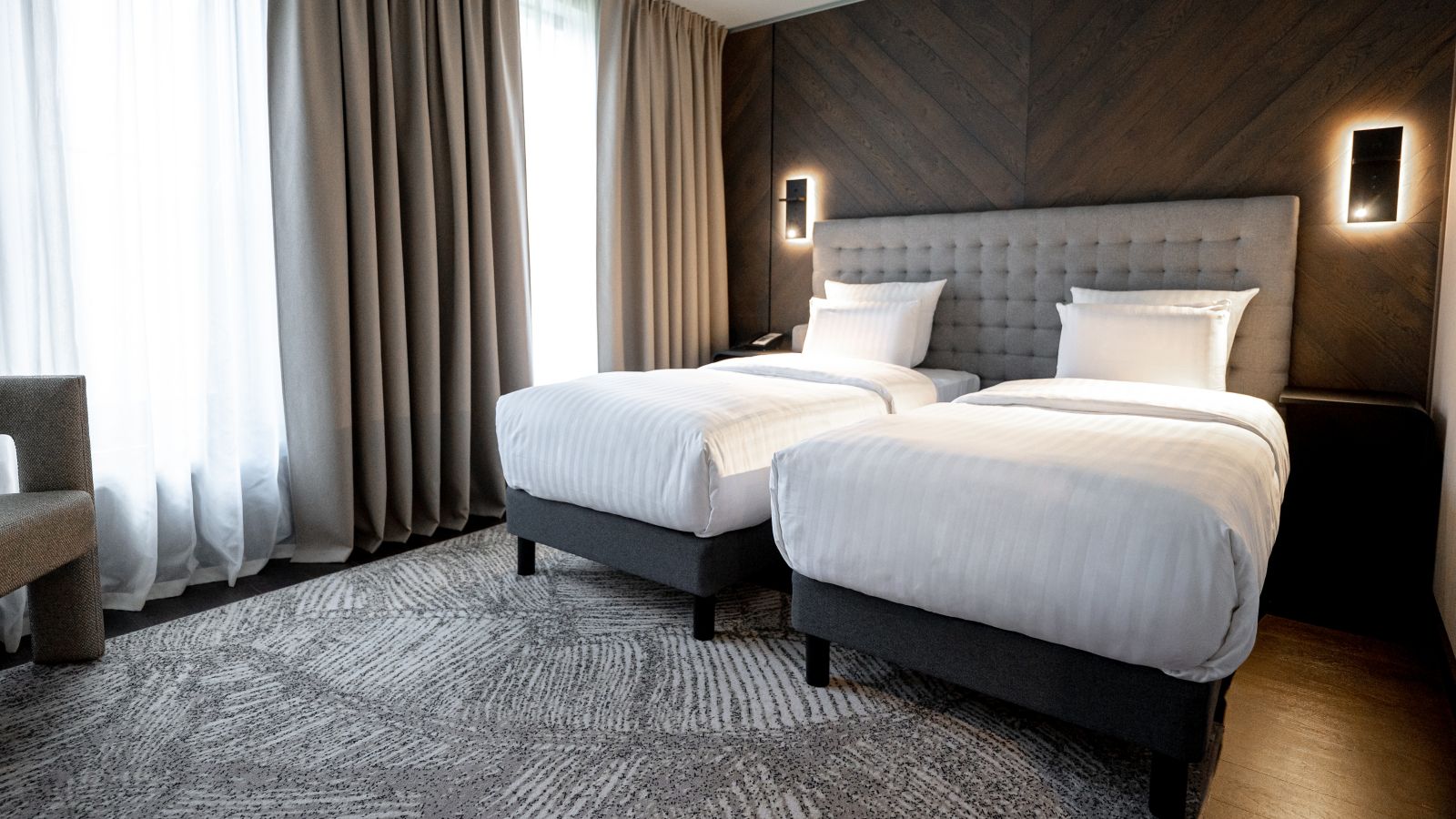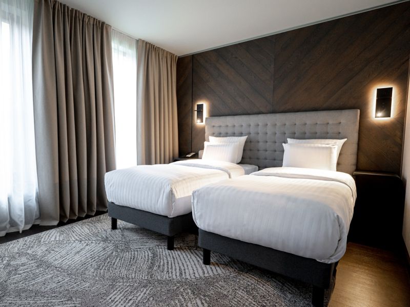 The air conditioned Superior Twin Bed Rooms range from 21 to 24 m² and feature atrium or city views, a large window, comfortable Pullman bed, free Internet, 55 in LED SMART TV, voicemail, safe, desk, kettle, minibar and rain shower.