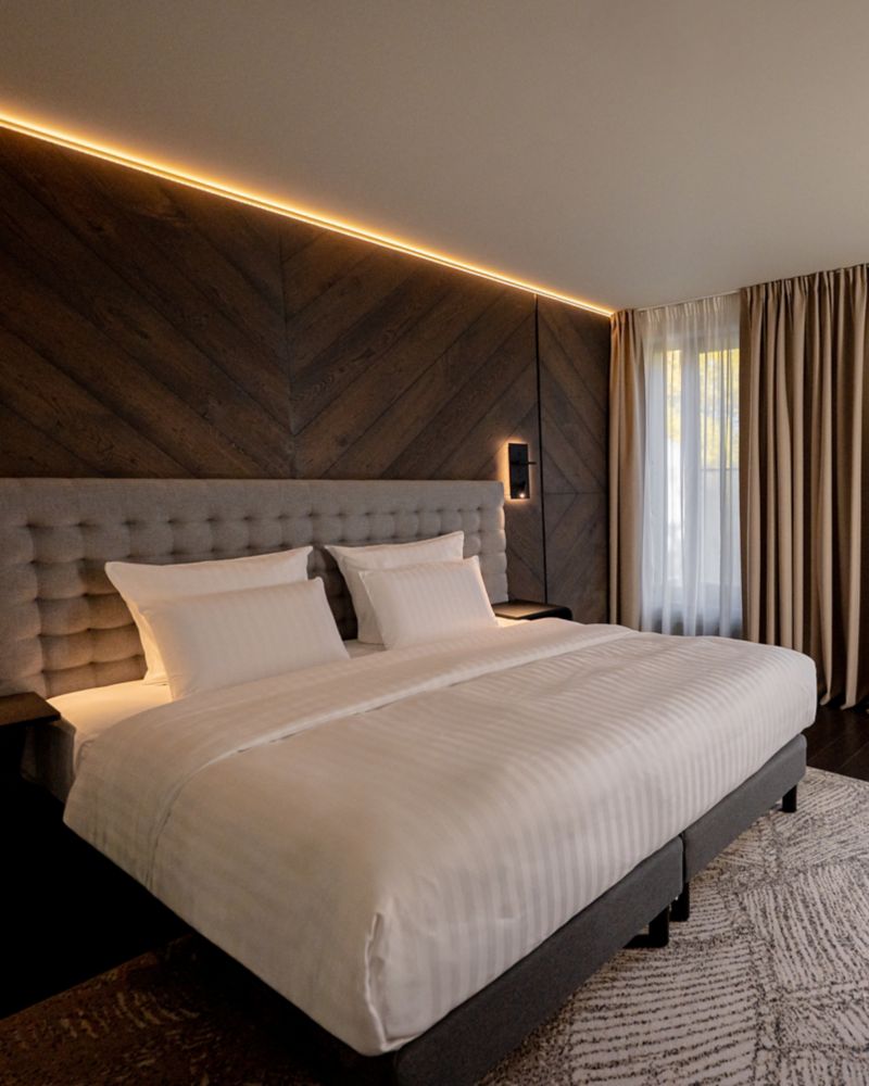 25-28 m² air conditioned room with king size bed, 55 in LED SMART TV, safe and desk all highlighted by modern design. Coffee machine, Bose docking station, atrium or city views.