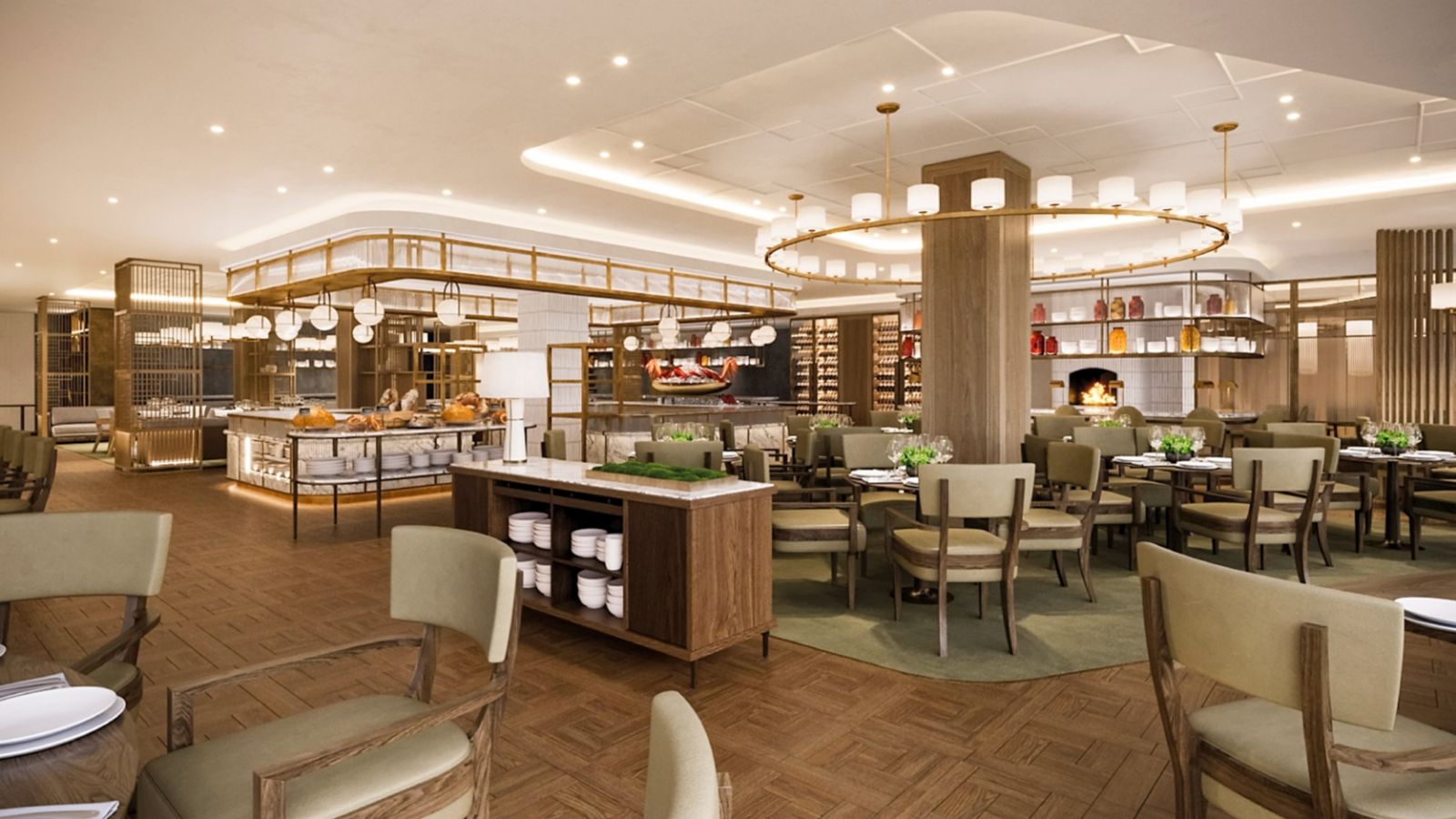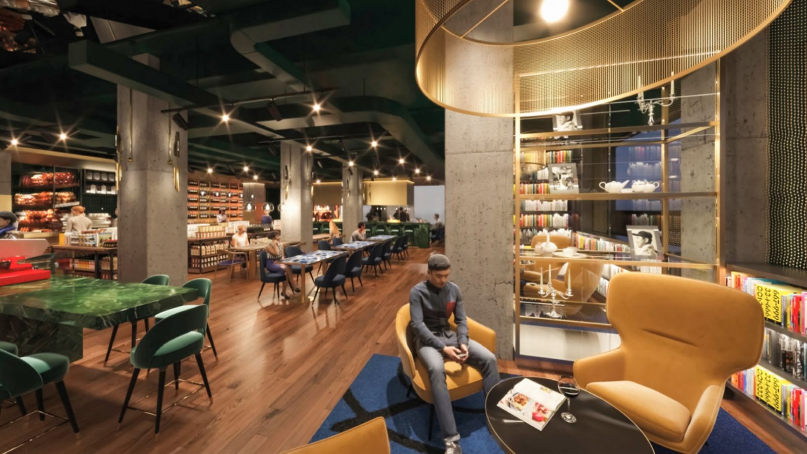 "1955 Groceria" is first grocerant(grocery-restaurant) concept for domestic hotel. It's lively dining space where you can experience variety of gourmet foods using purchased ingredients on the spot.