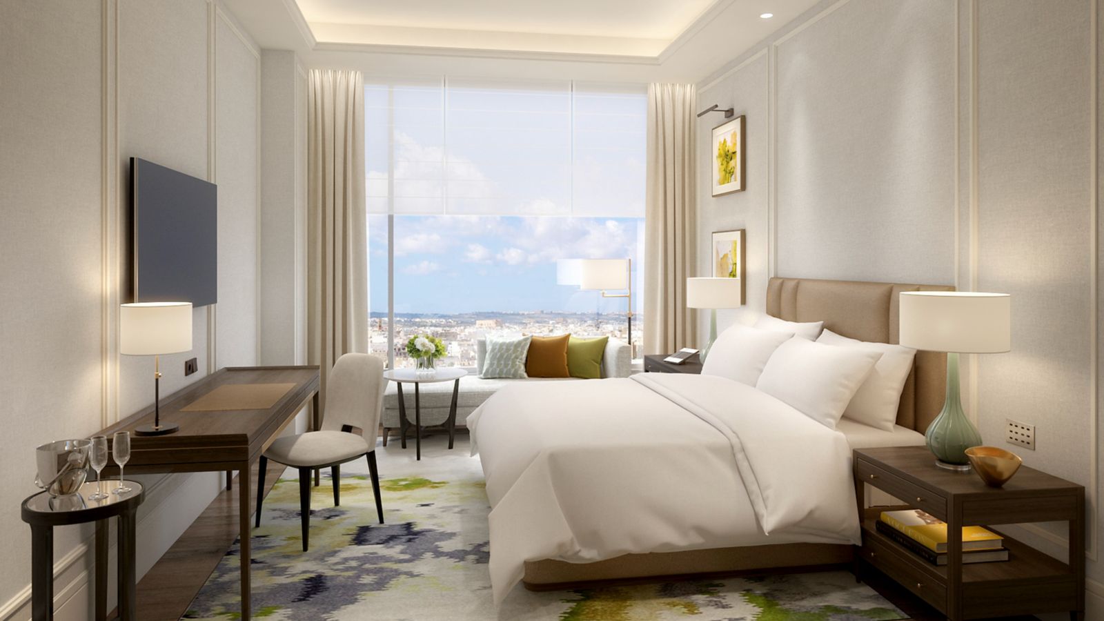 Heritage & delicate design. 1 King bed with Simmons BeautyRest bed. 65" LED Smart TV, Bluetooth speaker, Nespresso Coffee. Bath and shower with Penhaligons amenities. WiFi. Access to Club Ambassador Lounge, fitness, Indoor swimming pool.