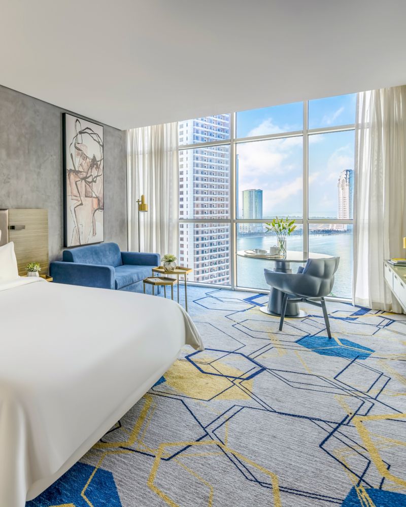 The Deluxe Room, featuring a king size bed and inspiring lagoon views, offers a refreshing haven. Enjoy 35 sqm (377 sqft) of space designed with thoughtful amenities and intuitive technologies, perfect for both relaxation and creative pursuits.