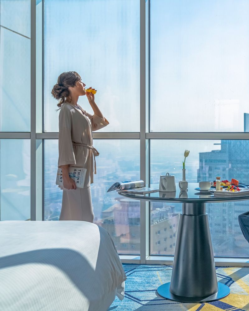 48 m² room with king size bed equipped with working space, minibar, laptop safe, 55" UHD 4K, individually controlled AC, bathrobe, hairdryer and luxury amenities. Complimentary mineral water, coffee and tea making facilities and 24-hour room service.