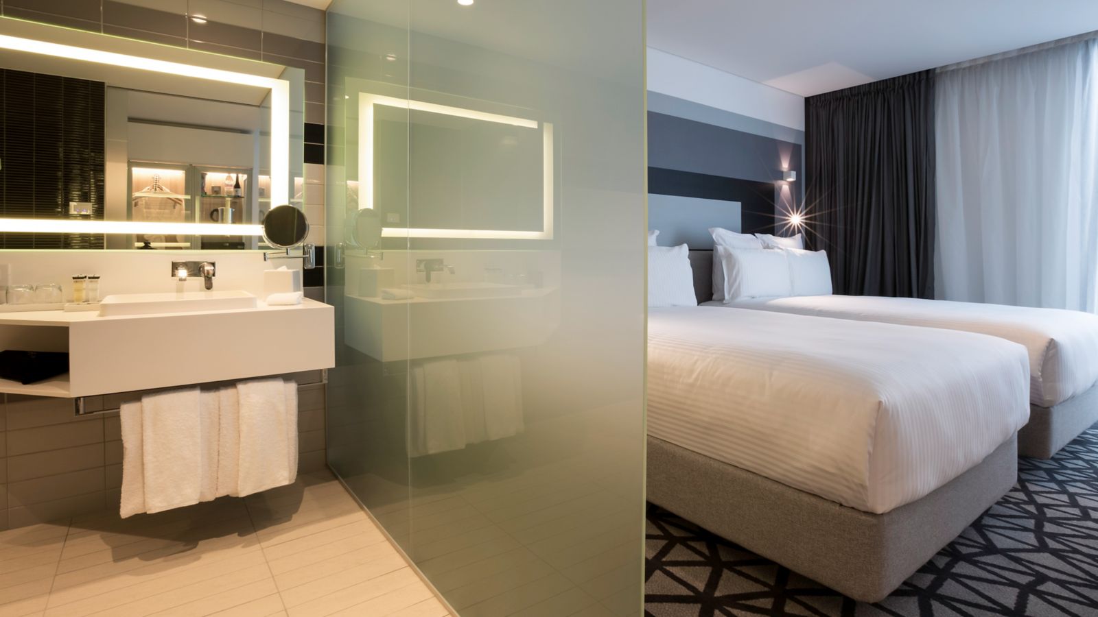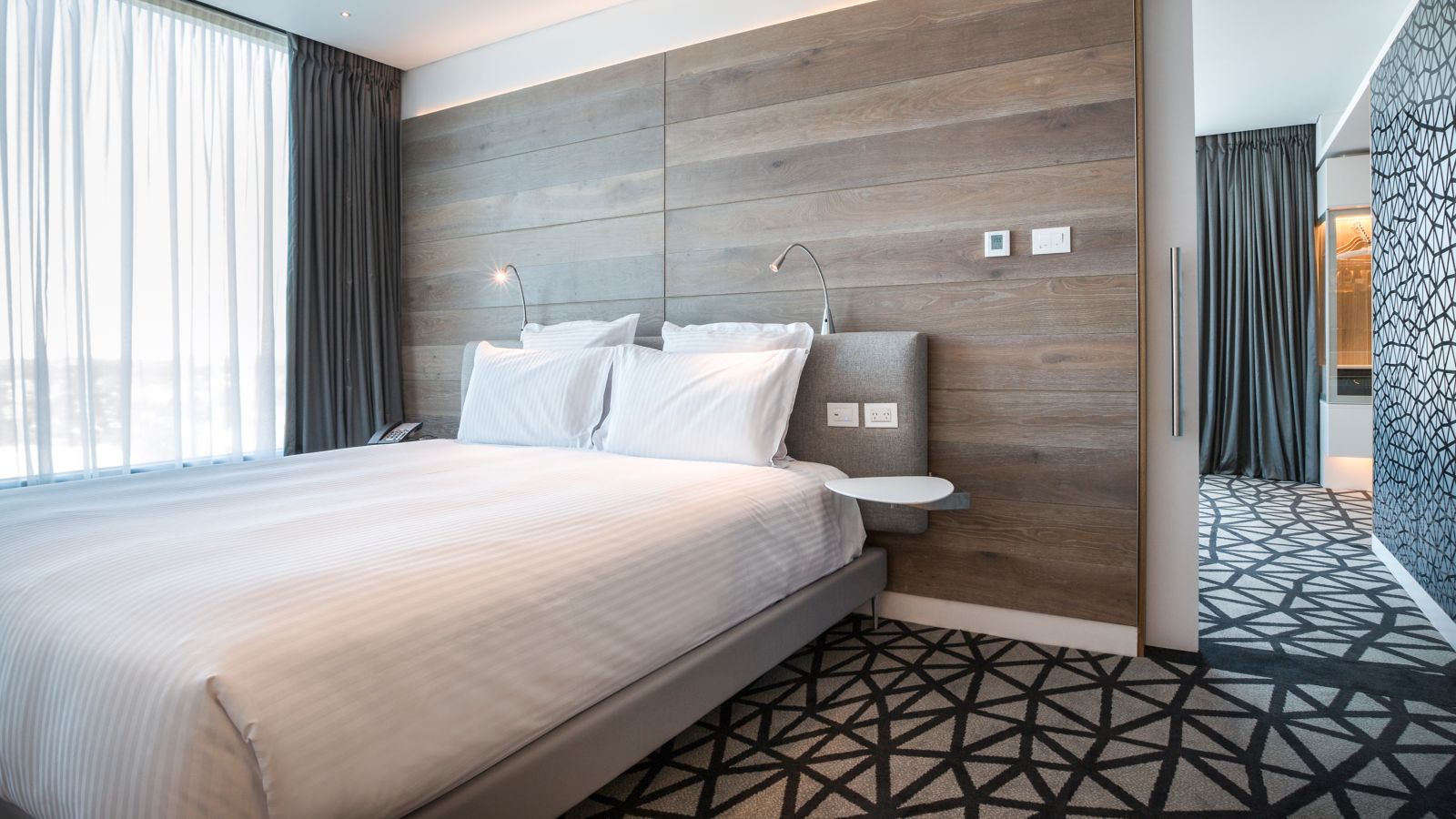 Our Executive room is inclusive of Executive Benefits offering evening canapés & buffet breakfast in Mobius Grill. This stylish room features a king bed, an open rain shower and 31sqm of living space.