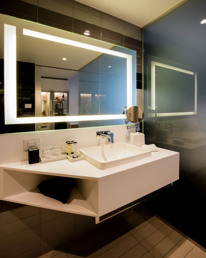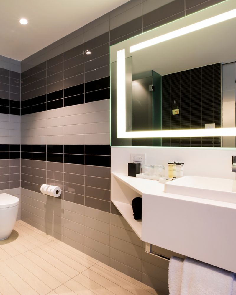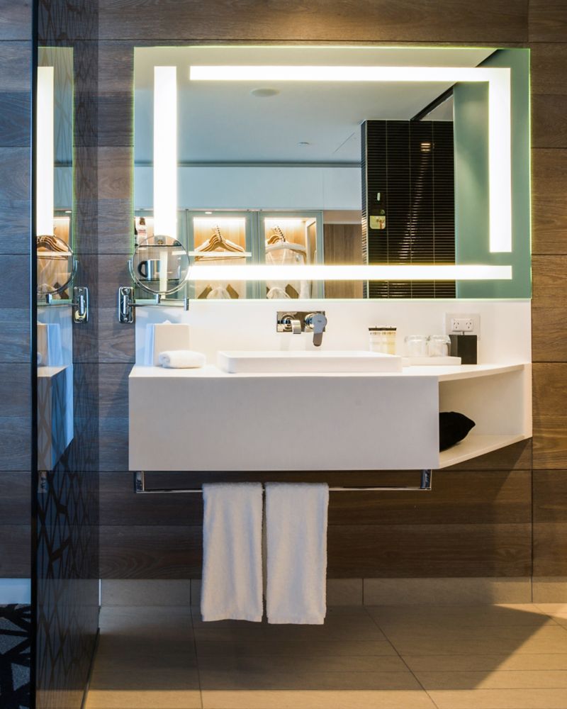 31 SQM / 333 SQF Room, Open contemporary design, floor to ceiling double glazed window, 48inch Smart TV, Accessible shower with pull-around curtain and fold-down seat, contoured lounge chair with ottoman, work desk, docking station, chargeable Internet an