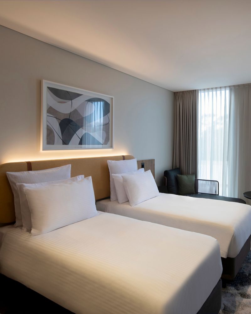 The Superior Room with Two King Single Beds offers a seamless blend of comfort and creativity across 28 sqm (301 sqft). Equipped with high-speed Internet, a 55-inch smart TV, and a Nespresso Coffee Machine, this space is designed for both revitalisation and productivity. Enjoy the dynamic vistas of mountain or city landscapes, providing a backdrop that inspires and refreshes.