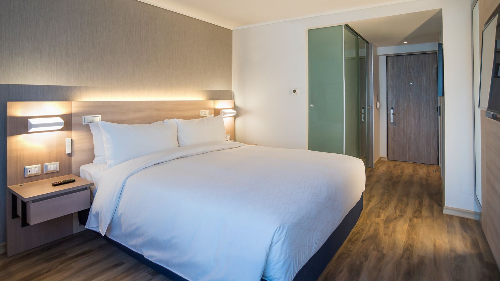 Located on penthouse floor. Cozy & modern 23 m² rooms with 1 king bed & a beautiful view of bay. Features 40" LCD with Netflix & Beyond TV entertainment system. Air conditioning, WiFi & work area
