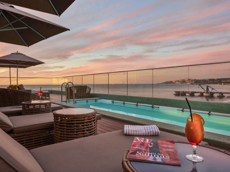 A rooftop bar overlooking the beach in the summer? Here you have it! Enjoy the happy hour of the Azotea Joaquin bar with the best Chilean wines and cocktails. Open from 11 a.m. to 11 p.m., summer only.