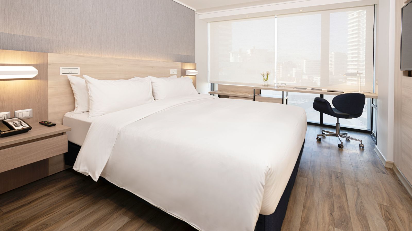 Rooms with ocean view and balcony included from the Hotel Pullman Lima Miraflores, just 5 minutes from one of the most visited beaches in the Pacific located in Lima. The rooms also have modern furniture, smart TVs, kettles. We also offer WIFI, rooms with or without breakfast, 24-hour restaurant and bar, party room and the best rooftop in the city. Come enjoy your stay at the best hotel in Miraflores!