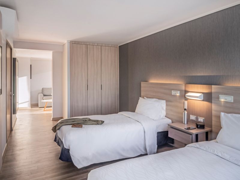 This pleasant and modern room of 23 m² is perfect for one or two. In the environment you will find two double beds, TV with Netflix, Beyond TV and large windows, favoring natural light.