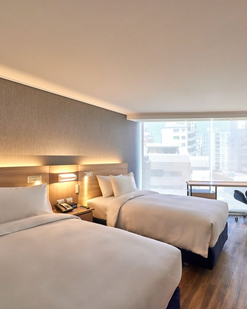The Twin Room on the top floor offers a refreshing haven with two single beds and a captivating city view. Immerse yourself in a space that balances rest and creativity, featuring intuitive technologies and thoughtful amenities. Enjoy the freedom to refresh and sustain creativity in a setting designed for meaningful pauses and soft comfort.