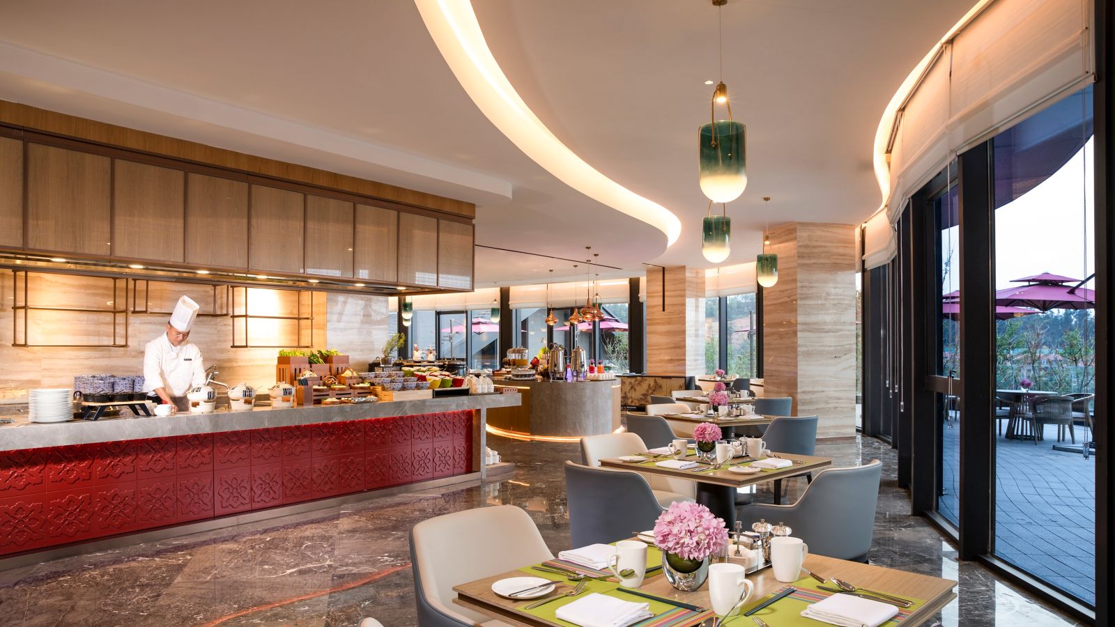The restaurant features 200 seats. From 7:00 to 23:00, the diner offers a fresh global cuisine experience and offers a buffet breakfast, A-La-Cart lunch menu and buffet dinner. While the menu changes throughout the day, the focus is always on celebrating
