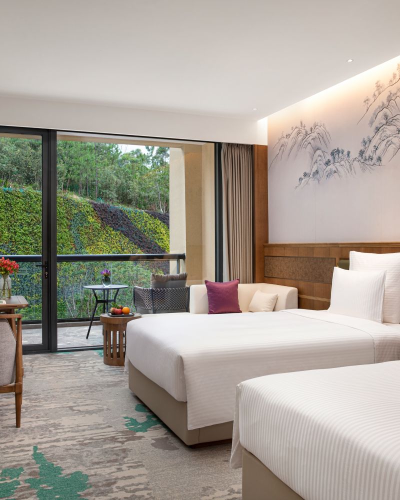 The Deluxe Room, with its 40 sqm (430 sqft) of thoughtfully designed space, offers a blend of rest and creativity. Revel in the Pullman Sleep Experience with two single beds, and let the invigorating views from your private balcony inspire creativity. Enjoy intuitive technologies like complimentary Wi-Fi and a Bluetooth speaker, alongside thoughtful comforts such as a writing desk and C.O. Bigelow amenities.