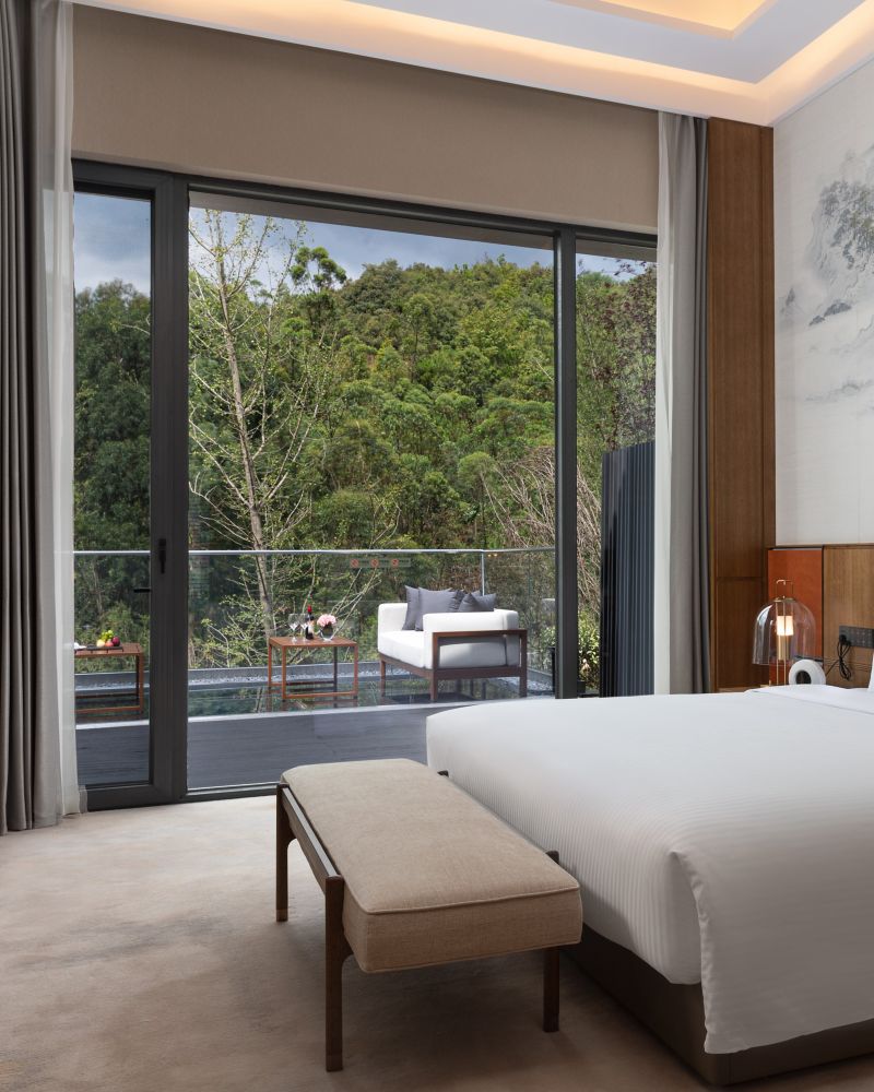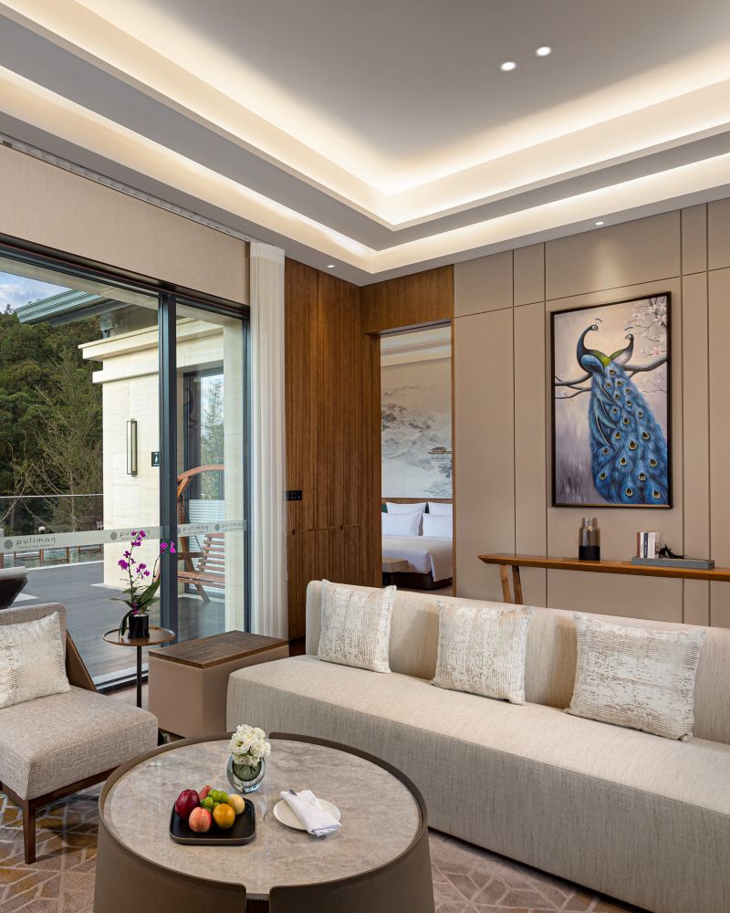 The Villa Exclusive Suite offers a harmonious blend of relaxation and creativity. Spanning 90 sqm (970 sqft), this suite features a private swimming pool, balcony, and invigorating mountain views. With intuitive technologies like a Bluetooth speaker and wireless charger, and the Pullman Sleep Experience, guests can seamlessly balance moments of rest and productivity.