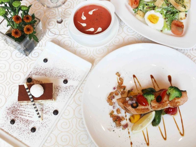80 seats available, tempting exotic classic cuisine, asian and western cuisines, splendid buffet for breakfast, beautiful pool view for guests to enjoy during meal.