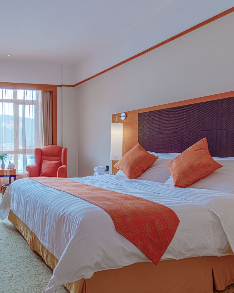 38m² (409 sq. ft.), Pullman beddings, 42" TV, work table, safe deposit box, mini bar, high-speed WIFI and internet connection, bathroom with separate bathtub and shower.