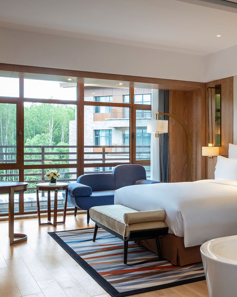 Esta habitación Deluxe con una cama king y un balcón privado ofrece un refugio donde los momentos de descanso y creatividad se unen. Disfrute de 35 m² de espacio diseñado tanto para la relajación como para una suave comodidad, que cuenta con tecnologías intuitivas y comodidades bien pensadas.