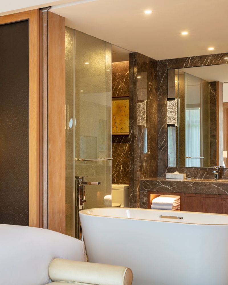 45 SQM/484 SQF, Located on levels 1 to 5, Free WiFi, 50 inch TV, Mini Bar, Working Desk, C. O. Bigelow Amenities, Separate Shower and Bathtub, Private Balcony, 1 Extra Bed possible.