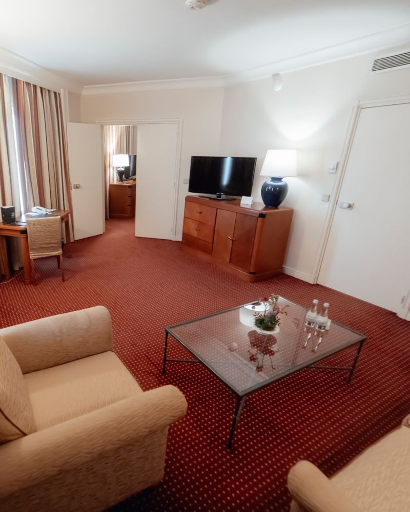 Confortable habitación (26 a 32 m²) con vistas al parque, una relajante cama, WIFI y minibar gratuitos (refrescos y cervezas), aire acondicionado, tetera, cafetera, televisor LCD con canales satélite, caja fuerte y productos de cortesía. Planta alta.