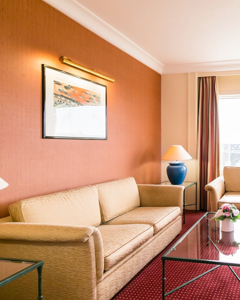 Suite espaciosa (48 a 60 m²) para viajes de placer o de negocios con una cómoda cama king size, sala de estar, WIFI gratuito, aire acondicionado, cafetera Nespresso, televisor LCD con canales vía satélite, minibar, caja fuerte y productos C.O. Bigelow.