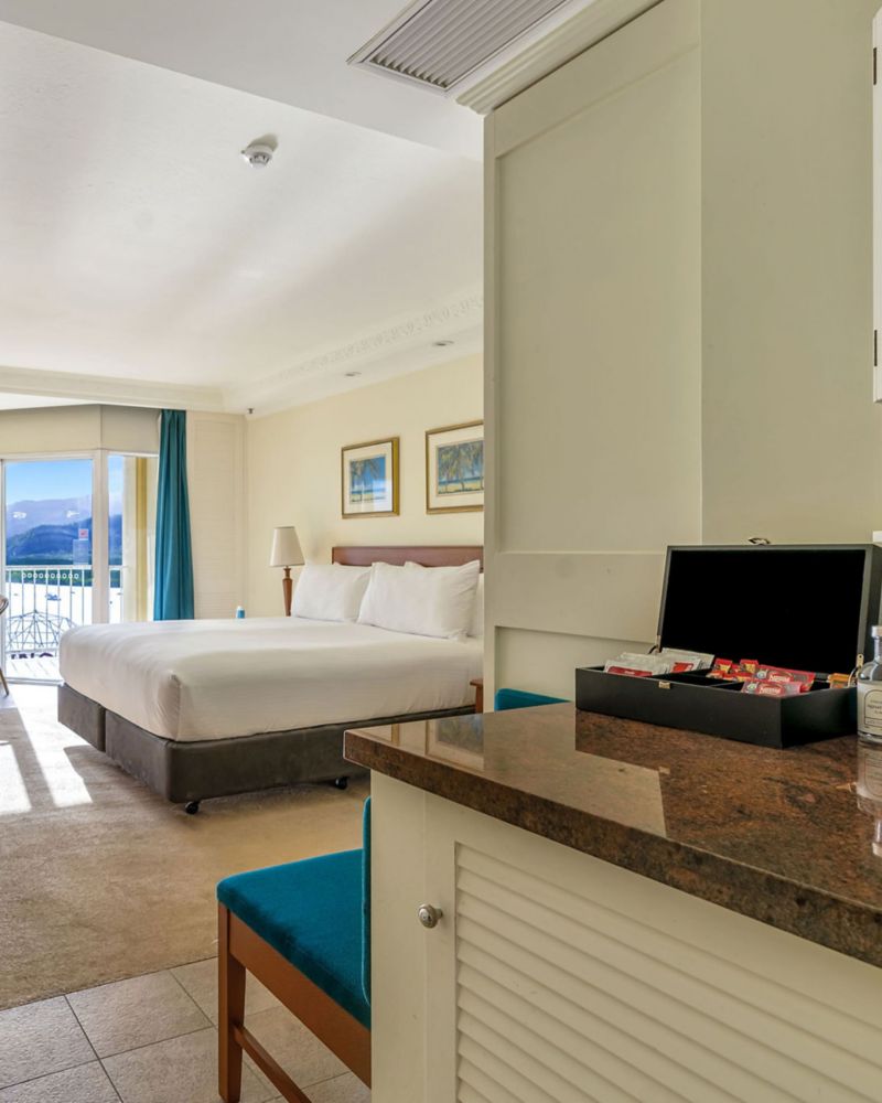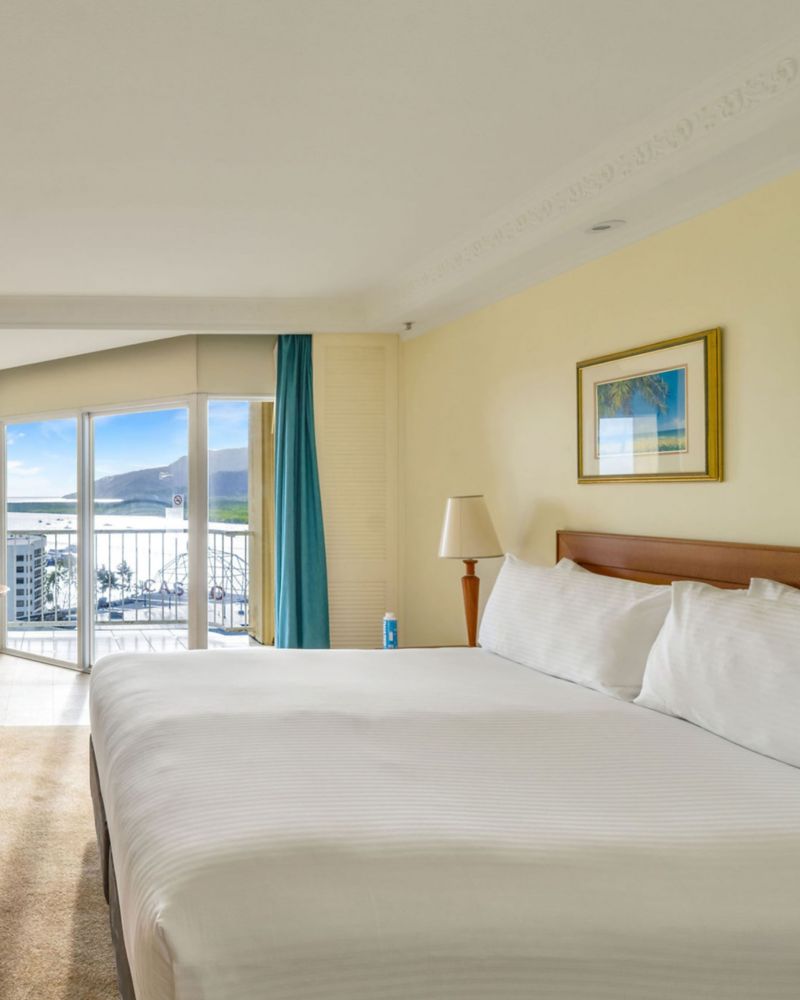 Ubicada en nuestros pisos superiores, la Habitación Clásica con vista al puerto ofrece un sereno retiro de 40 m² con una cama queen. Sumérjase en la tranquilidad de las vistas al puerto de Cairns desde su balcón privado, donde se combinan momentos de descanso y creatividad. Disfrute de Internet de alta velocidad y un baño privado de mármol.