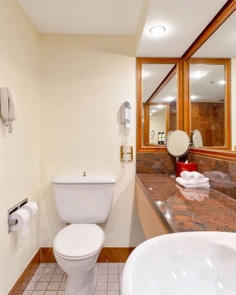 Nuestra habitación Superior accesible, recientemente reformada, cuenta con una cama king size, balcón privado, baño accesible, productos de tocador personalizados, TV de 50", cafetera Nespresso, minibar y WIFI gratuito