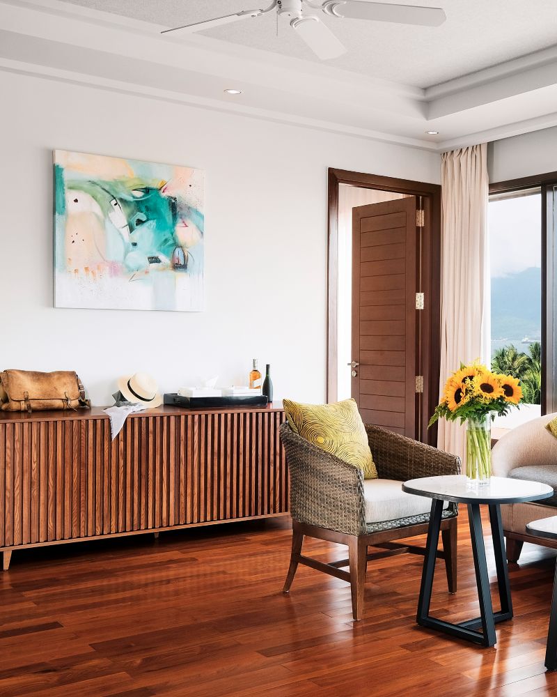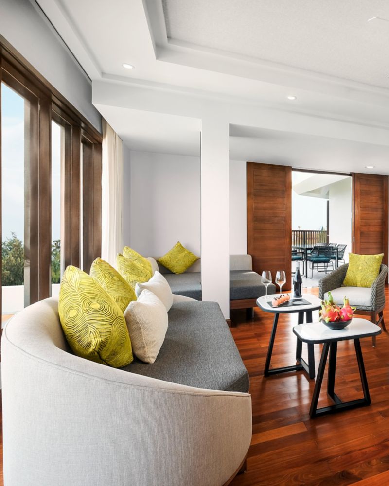 La suite familiar, de 122 m², combina la comodidad con la conectividad y ofrece un espacio animado para la relajación y la creatividad. Disfrute de las amplias vistas al mar o al jardín desde su terraza privada, perfecta para hacer pausas significativas y compartir momentos en familia.