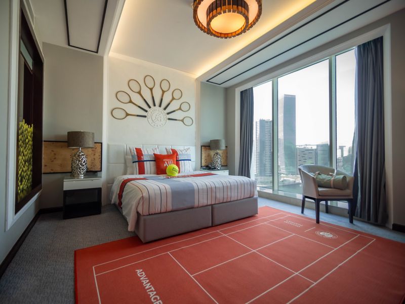 Suite rediseñada para encarnar el espíritu de Roland-Garros, con una decoración inspirada en el torneo en un ambiente deportivo y elegante, que prolonga la experiencia inmersiva hasta la noche. Suite temática reservable durante todo el torneo. Caja fuerte