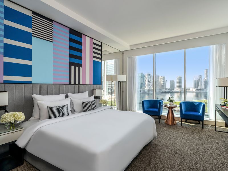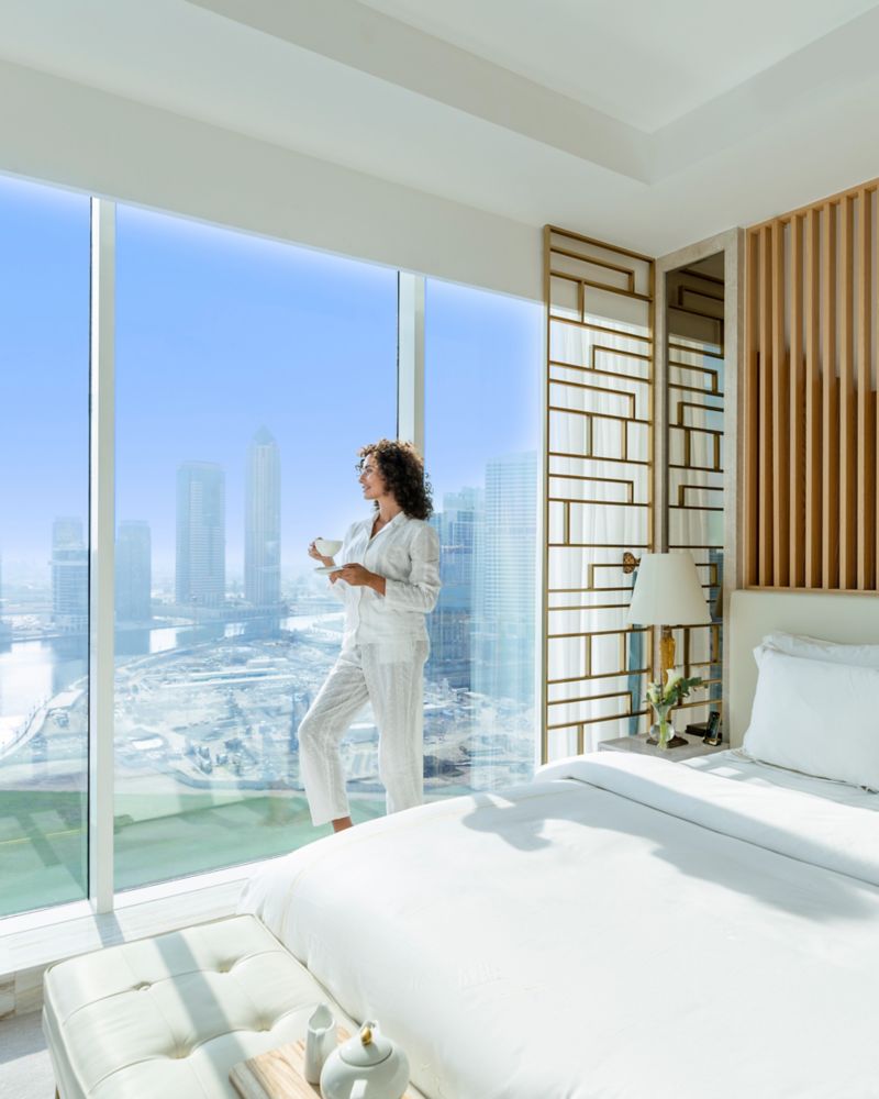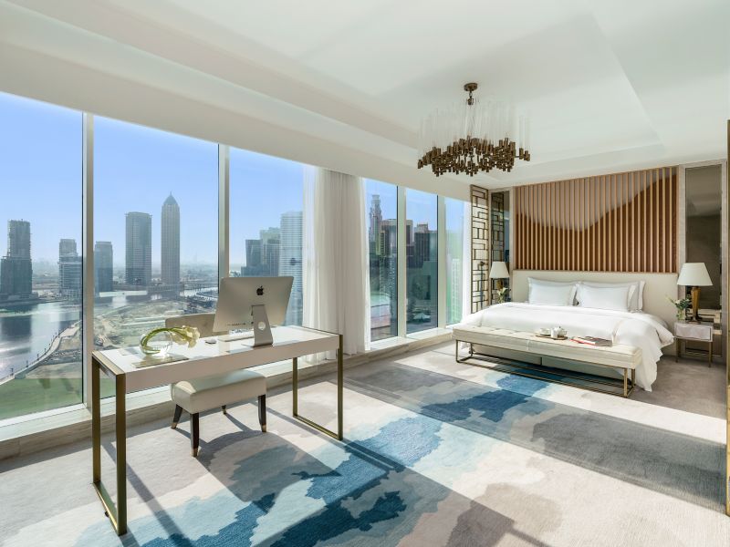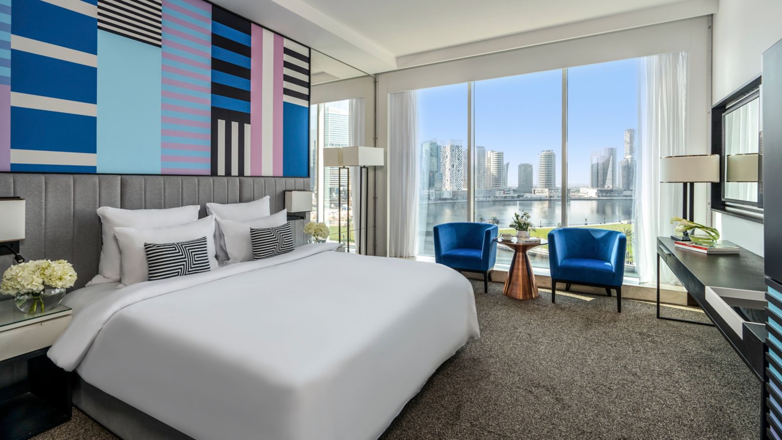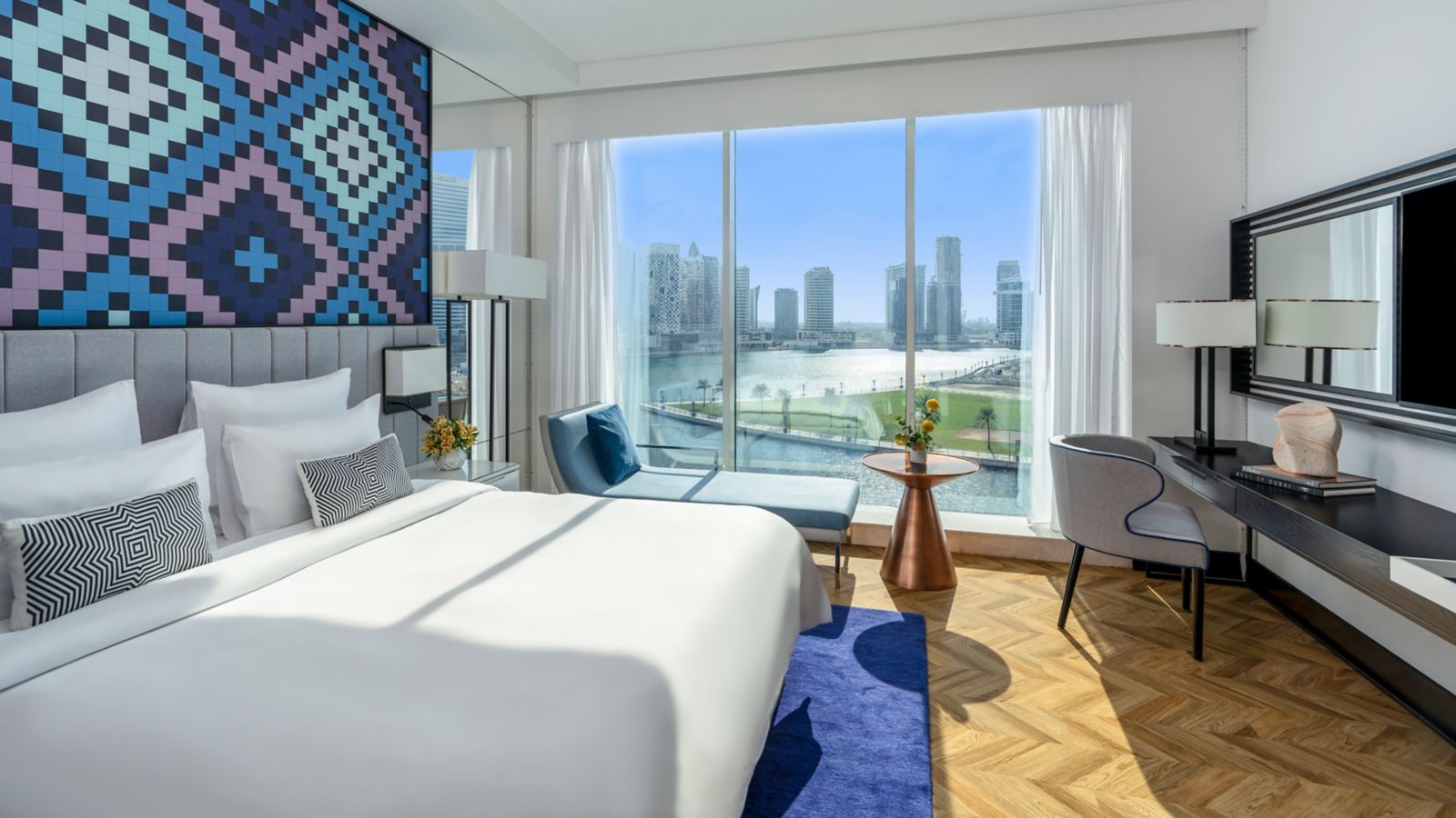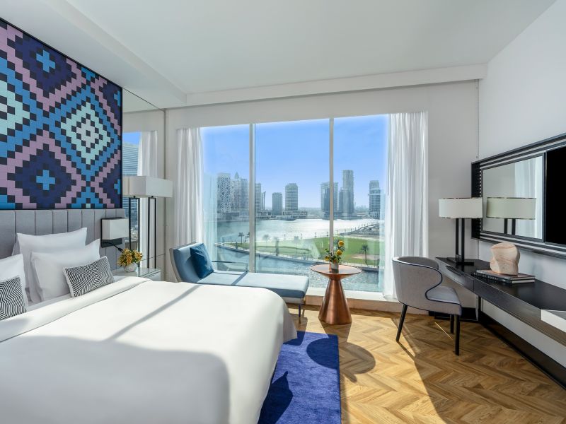 Habitación Superior en un hotel de 5 estrellas en Business Bay con cama king size, increíbles vistas a la ciudad, 32 m², Smart TV con Netflix, sistema Bluetooth, minibar y bañera. Capacidad para 2 adultos y 1 niño o 3 adultos. WIFI gratuito. Caja fuerte.