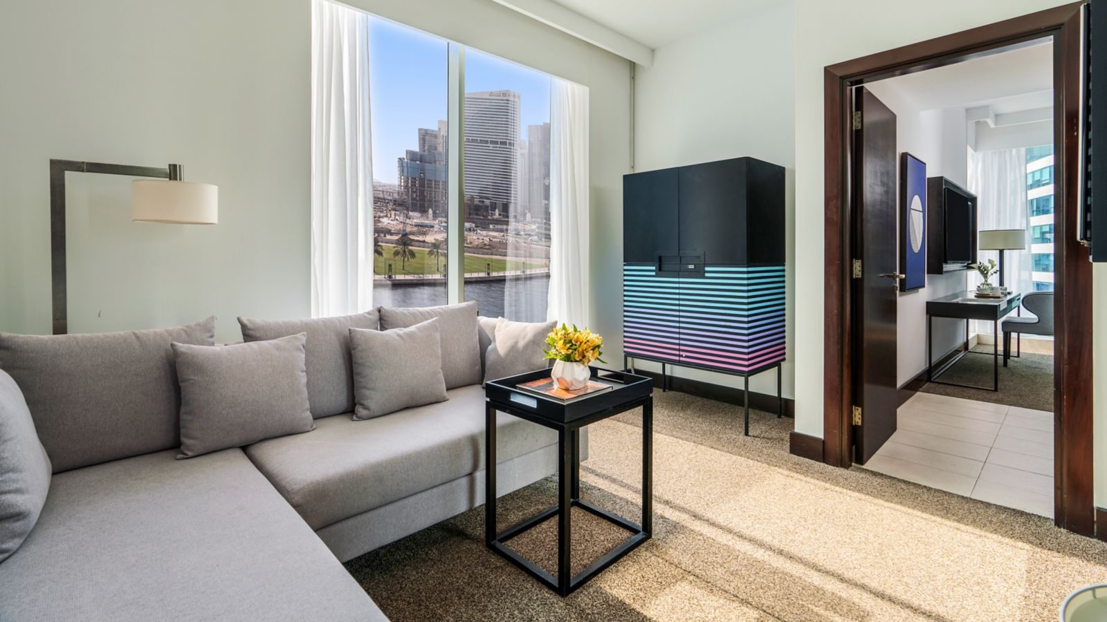 Suite Deluxe con acceso al Club Lounge. Vistas a la ciudad, la piscina y parciales al canal en una suite de 64 m² con Smart TV con Netflix, salón independiente, ducha y bañera. Para 2 adultos y 2 niños o 3 adultos y 1 niño. WIFI gratuito. Caja fuerte