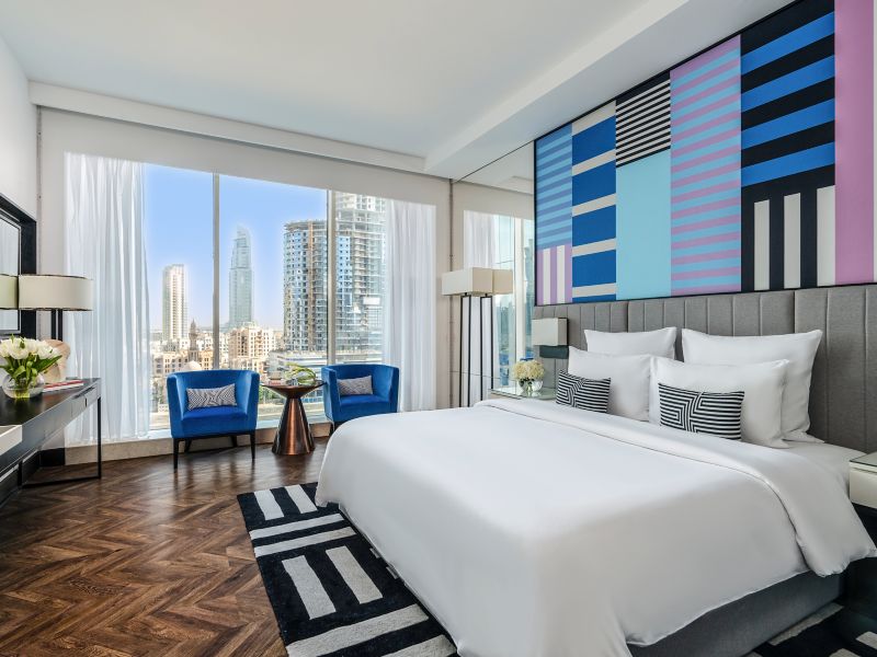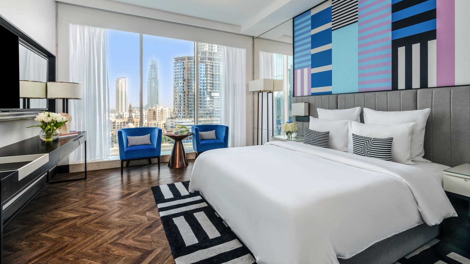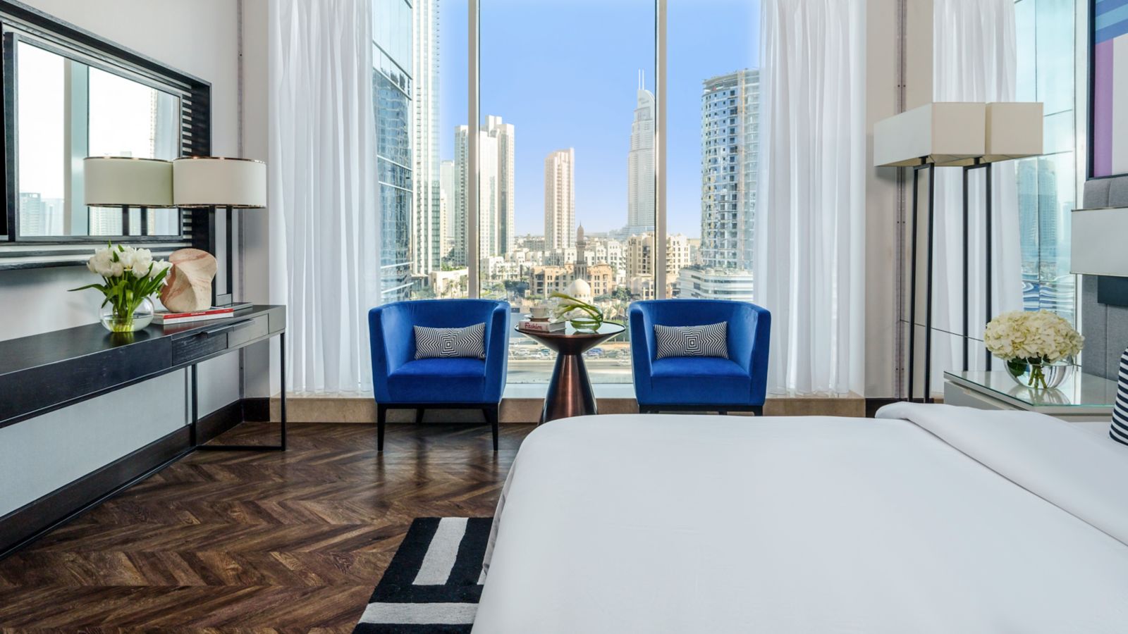 Habitación Executive con cama king size y vistas al Burj Khalifa