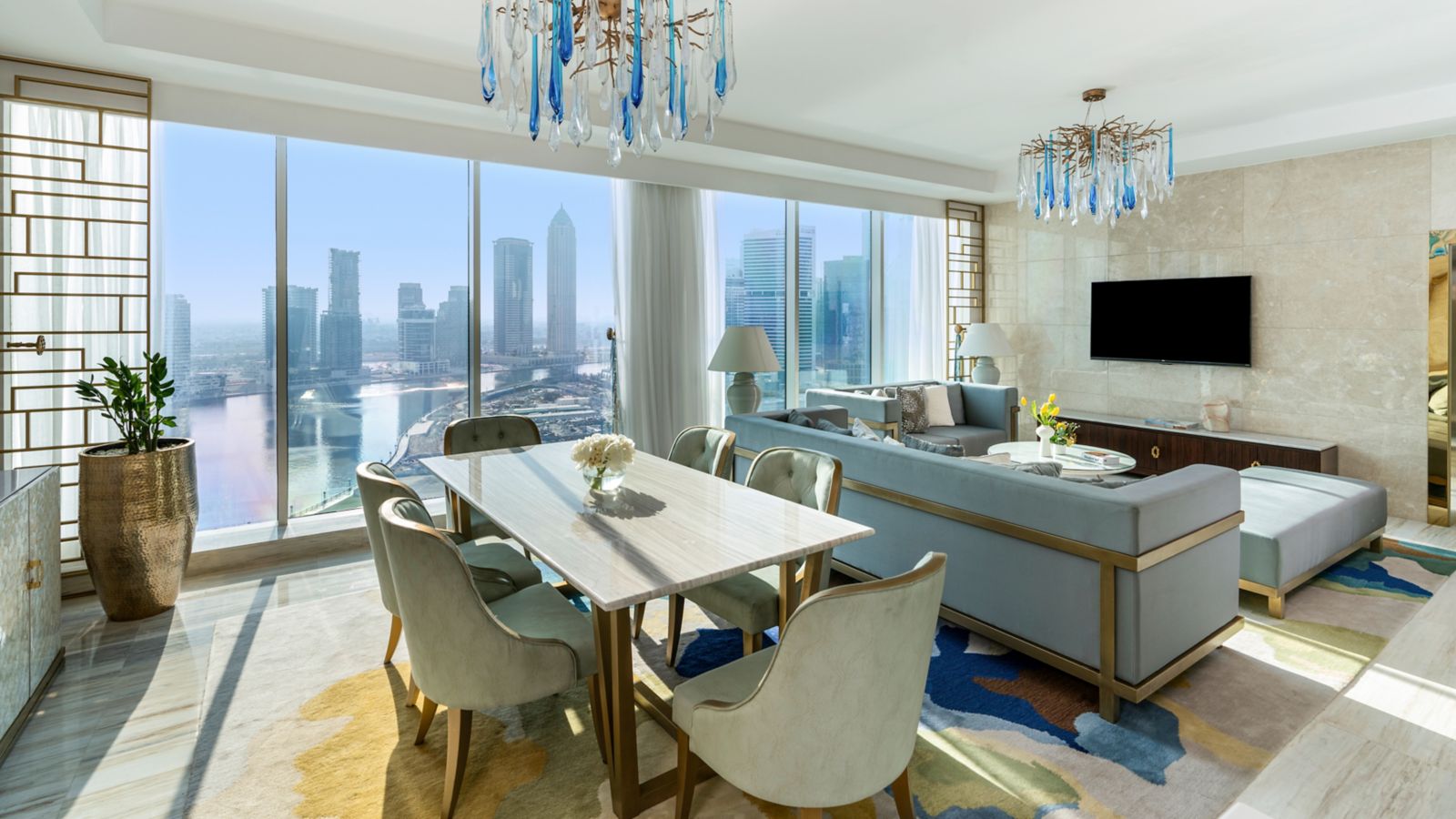 Alójese en nuestra suite Presidencial con acceso al Club Lounge. Suite de 125 m² con vistas al canal, ducha, bañera, Smart TV, salón, comedor y despensa. Capacidad para 2 adultos y 2 niños o 3 adultos y 1 niño. WIFI gratuito. Caja fuerte.