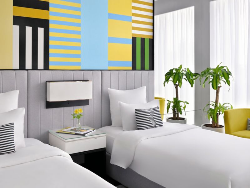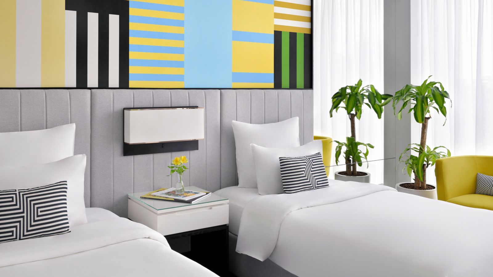 Habitación Superior con dos camas individuales en este hotel de 5 estrellas. 32 m², increíbles vistas a la ciudad, Smart TV con Netflix, sistema Bluetooth, minibar y bañera. Capacidad para 2 adultos y 1 niño o 3 adultos. WIFI gratuito. Caja fuerte.