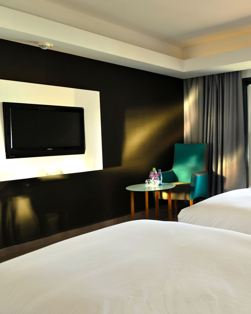 Habitación elegante y cómoda con 35 m², sofá cama, balcón o terraza, conexión WIFI, TV LCD con canales por satélite, caja fuerte, minibar, aseo independiente, baño con ducha, secador, aire acondicionado y bandeja de cortesía.