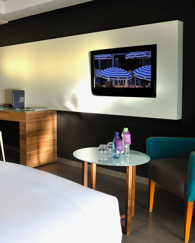 35 m², elegante y cómoda, con balcón o terraza, conexión WIFI, TV LCD con satélite, caja fuerte, minibar, baño con ducha, aseo independiente, secador, aire acondicionado y bandeja de cortesía.