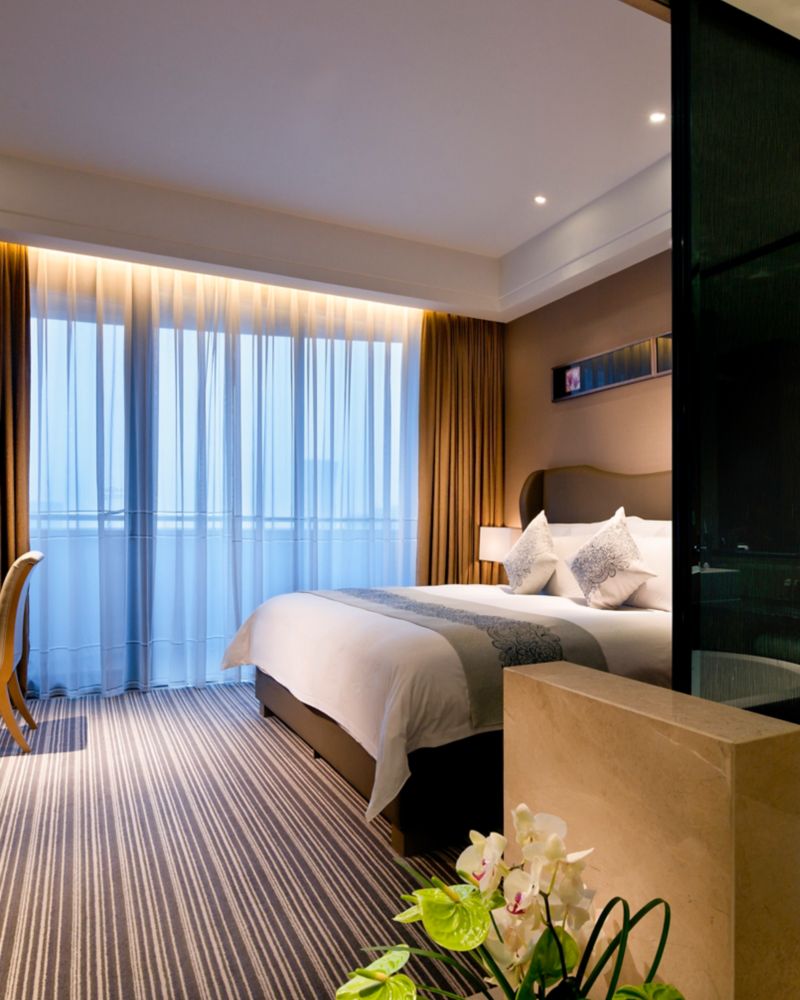 La habitación Deluxe con cama tamaño king y balcón privado ofrece un refugio de 45 m² en los pisos 5 a 13, que combina el descanso con la creatividad. Disfrute de la vista a la ciudad desde su balcón privado o mantenga su productividad en el elegante escritorio. Los servicios modernos y una amplia zona de estar brindan una experiencia fluida de renovación e innovación.