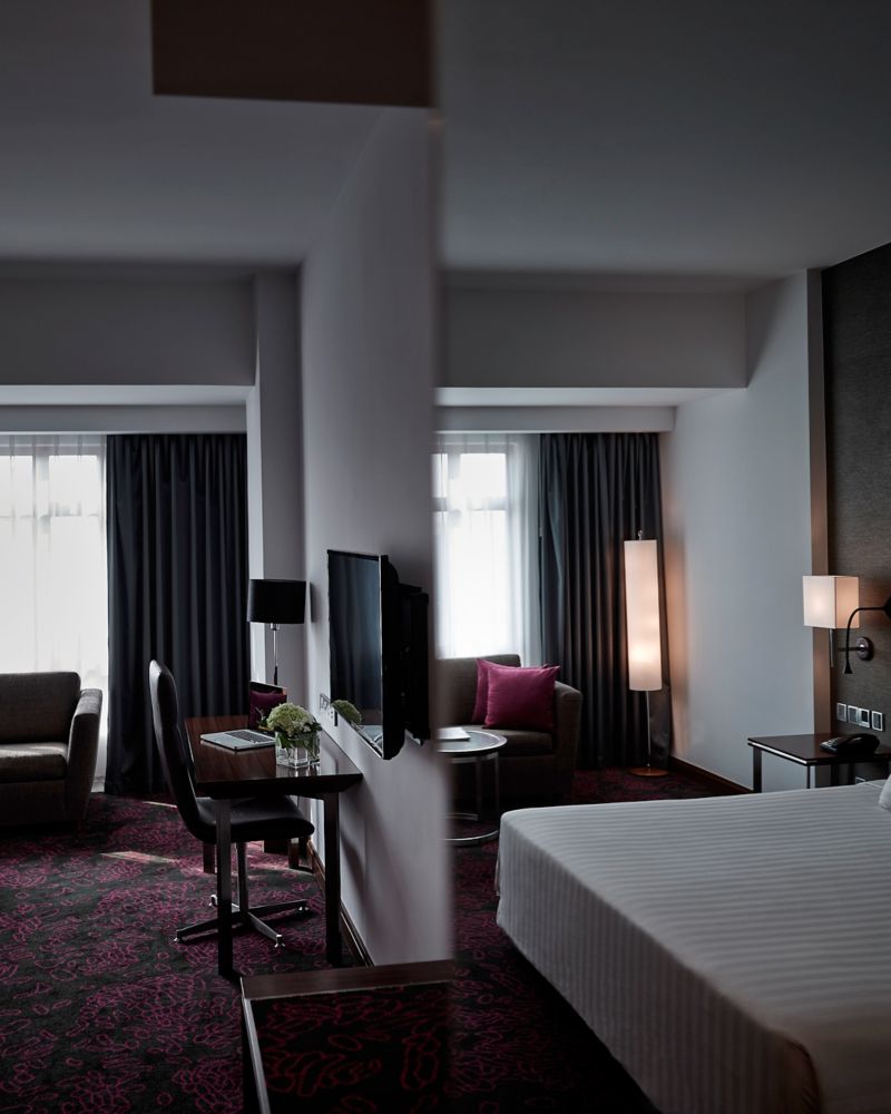 La habitación Deluxe Executive, con su cama Pullman tamaño king y vistas a la ciudad, ofrece un refugio renovador de 32 m². Sumérjase en un espacio donde el diseño contemporáneo se combina con tecnologías intuitivas, desde duchas tipo lluvia hasta cafeteras espresso, todo complementado con el acceso exclusivo al lounge.