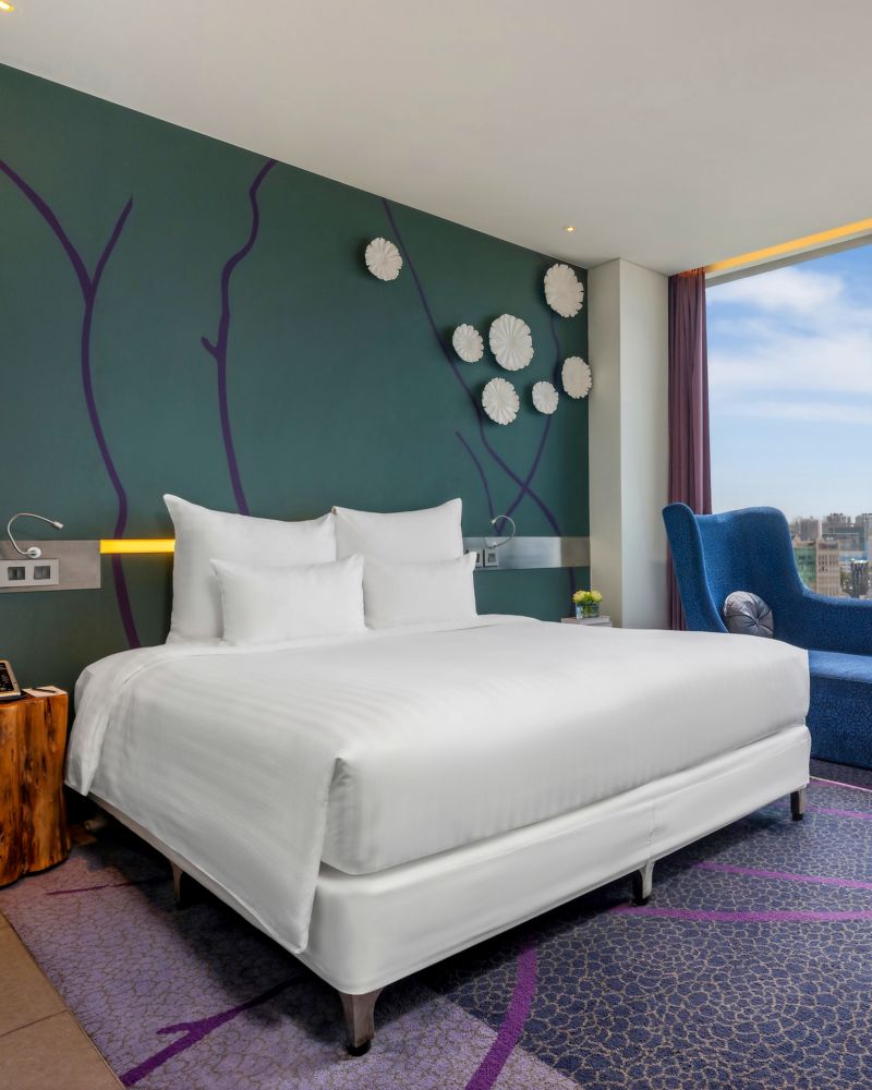 Esta elegante habitación de 35 m² cuenta con 2 exclusivas camas Pullman, vibrantes vistas a la ciudad, TV LED de 40", ducha de lluvia y servicio de habitaciones 24 horas.