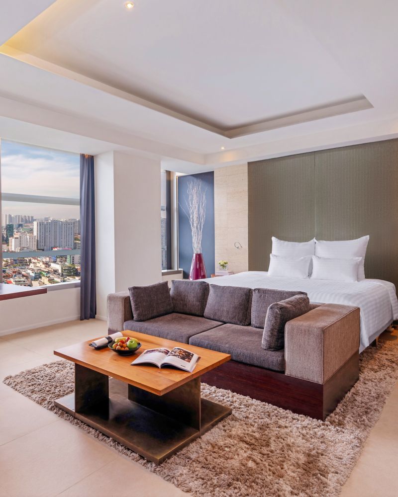 Esta elegante habitación de 35 m² cuenta con la exclusiva cama Pullman, vibrantes vistas a la ciudad, TV LED de 40", ducha de lluvia y servicio de habitaciones 24 horas.
