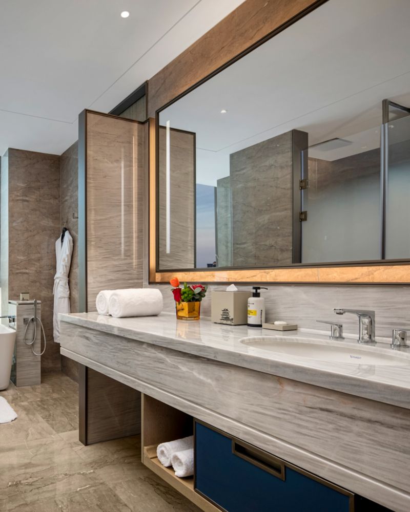 Descubra amplios retiros con vistas revitalizantes y comodidades bien pensadas en todo el espacio. Nuestras habitaciones Deluxe Executive son el refugio perfecto para que pueda aprovechar el tiempo y concentrarse en el descanso y la creatividad durante su estadía. Disfrute de detalles bien pensados, como tecnologías intuitivas y comodidades de categoría superior.