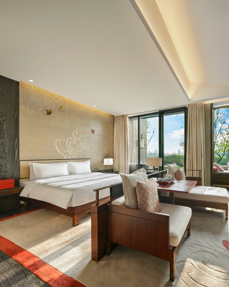 La habitación Deluxe Executive, un refugio de 70 m², combina vistas serenas con comodidades modernas. Disfrute de una cama tamaño king, tecnologías intuitivas y acceso exclusivo al lounge, el espacio perfecto para relajarse y fomentar la creatividad.