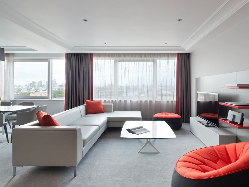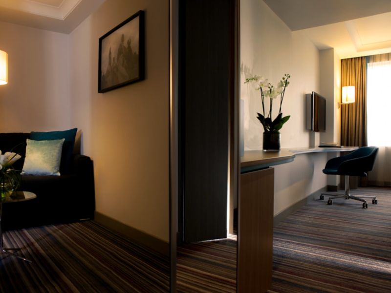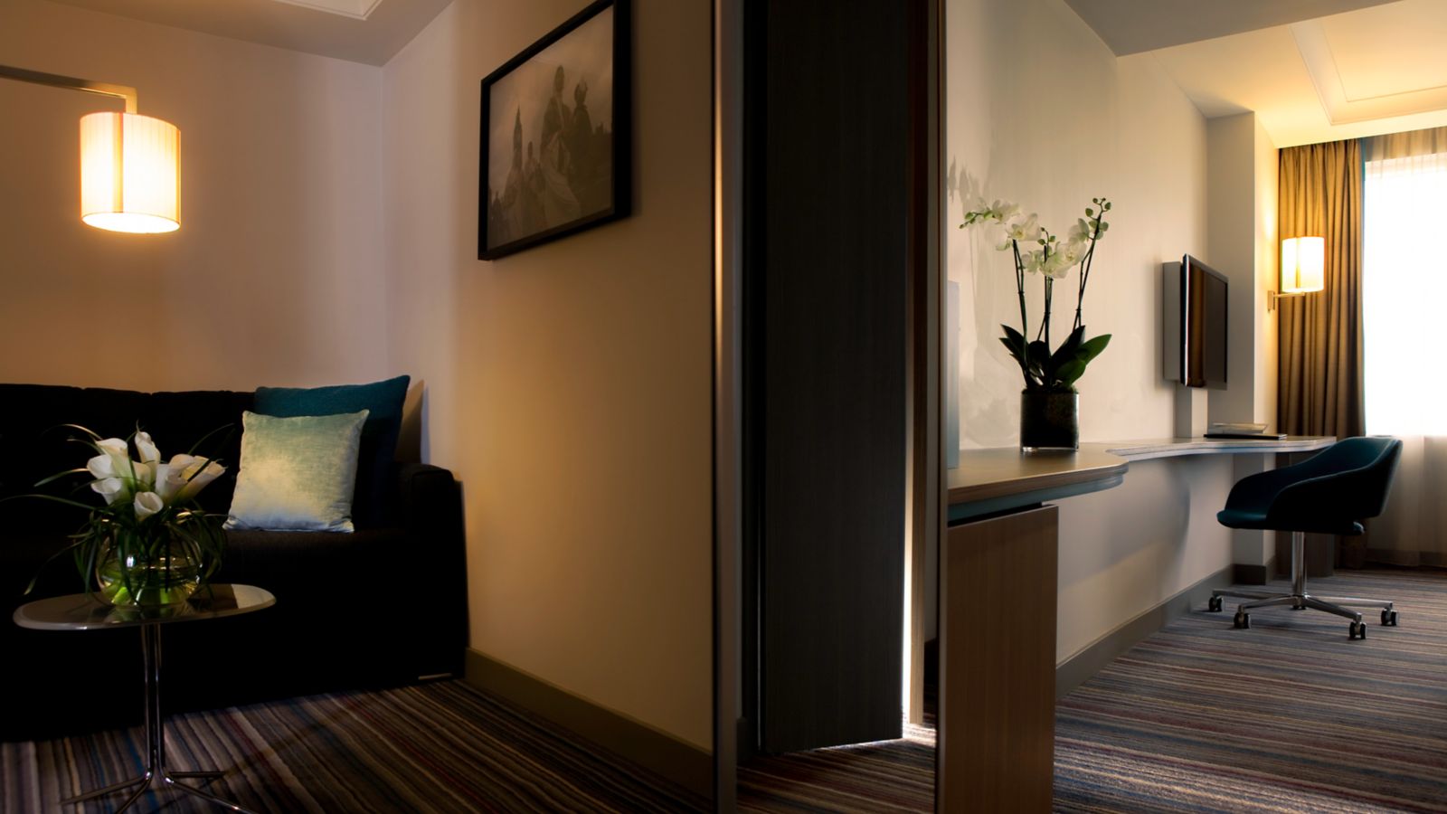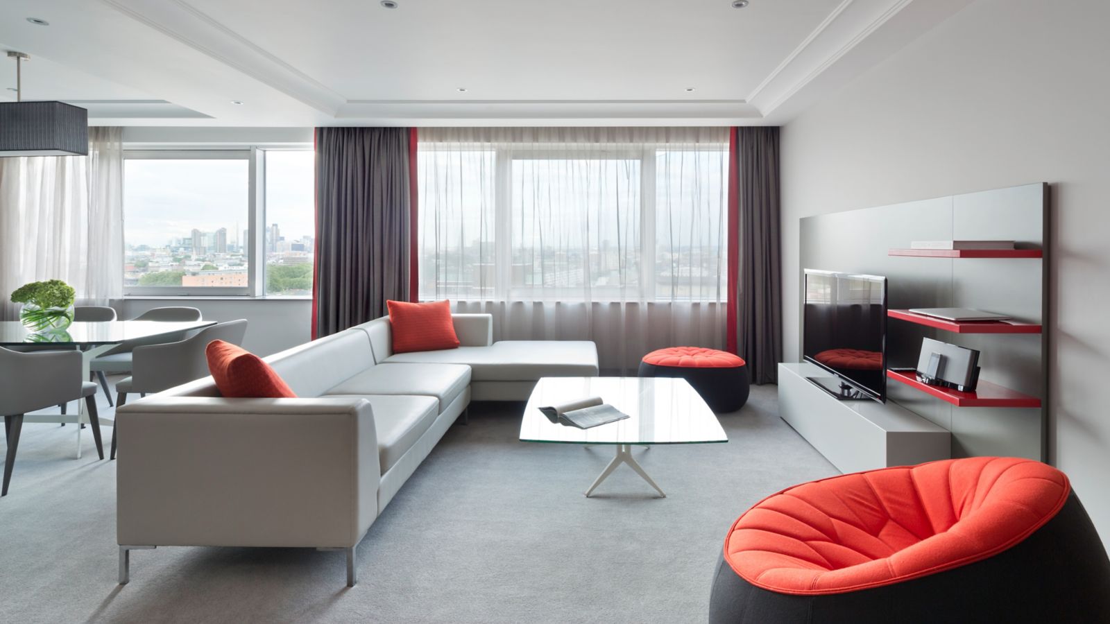 Esta suite de 79 m² cuenta con televisor con pantalla de 40 pulgadas, vistas panorámicas a la ciudad, un moderno diseño y servicios adicionales a los de la suite Junior con zona de salón independiente con mesa de comedor, microondas y sistema Bose.