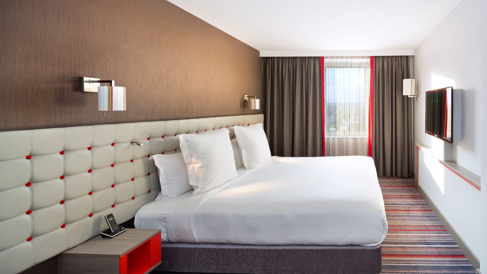23 m², cama king size y sofá cama. Disfrute de las ventajas de la habitación Classic con cama king size, con el lujo de una zona independiente con sofá cama y una 2.ª TV.